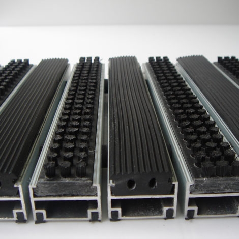 1. 框架:鋁鎂合金,型材高度爲18mm,厚度達到2mm,承受力強,不易變形。 2. 面料之一:橡膠,採用“熱塑性橡膠”,可耐高溫140度,低溫-70度。 3. 面料之二:地毯,圈絨(材質較硬),不易磨損。 4. 色彩:面料色彩豐富,可根據客戶需要靈活搭配。 5. 面層作爲入口系統的一個重要部分,同時影響了設計效果
