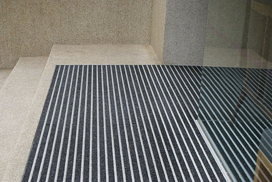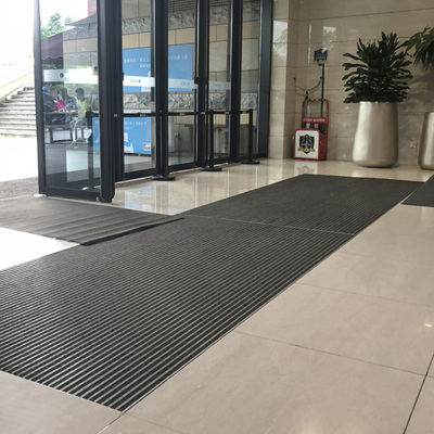 1. 框架:鋁鎂合金,型材高度爲18mm,厚度達到2mm,承受力強,不易變形。 2. 面料之一:橡膠,採用“熱塑性橡膠”,可耐高溫140度,低溫-70度。 3. 面料之二:地毯,圈絨(材質較硬),不易磨損。 4. 色彩:面料色彩豐富,可根據客戶需要靈活搭配。 5. 面層作爲入口系統的一個重要部分,同時影響了設計效果